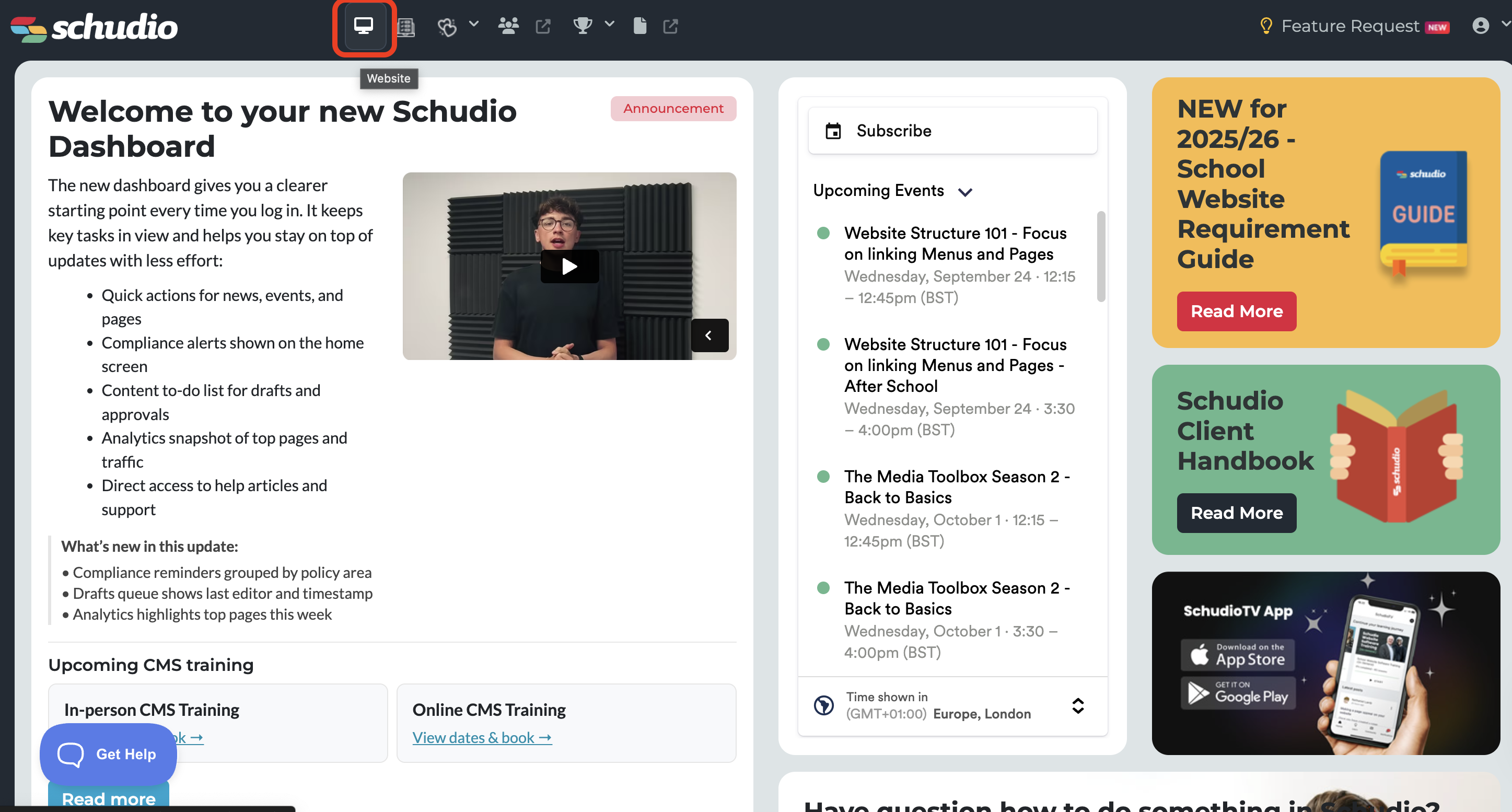 - On the Admin Dashboard, select the Website icon in the top toolbar. This will take you to your website editing area.