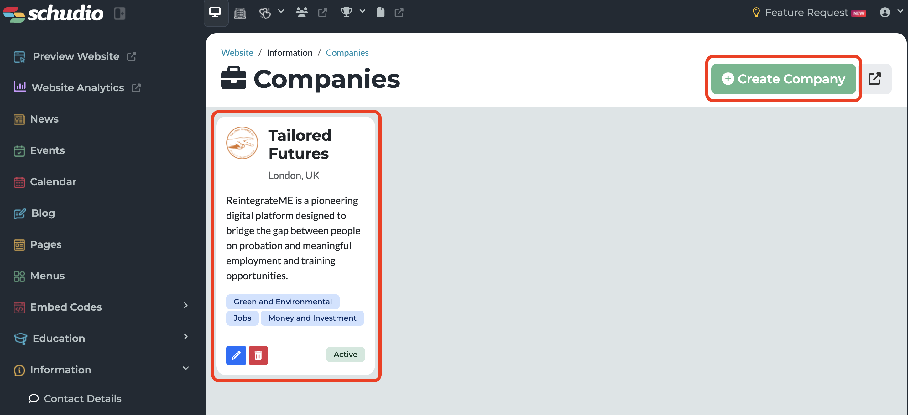 “Companies” is a new module now available in the admin area of your website. We’ve created this tool to make it easy for you to: