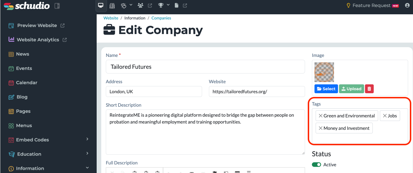 Tags allow visitors to filter the companies displayed on your website.