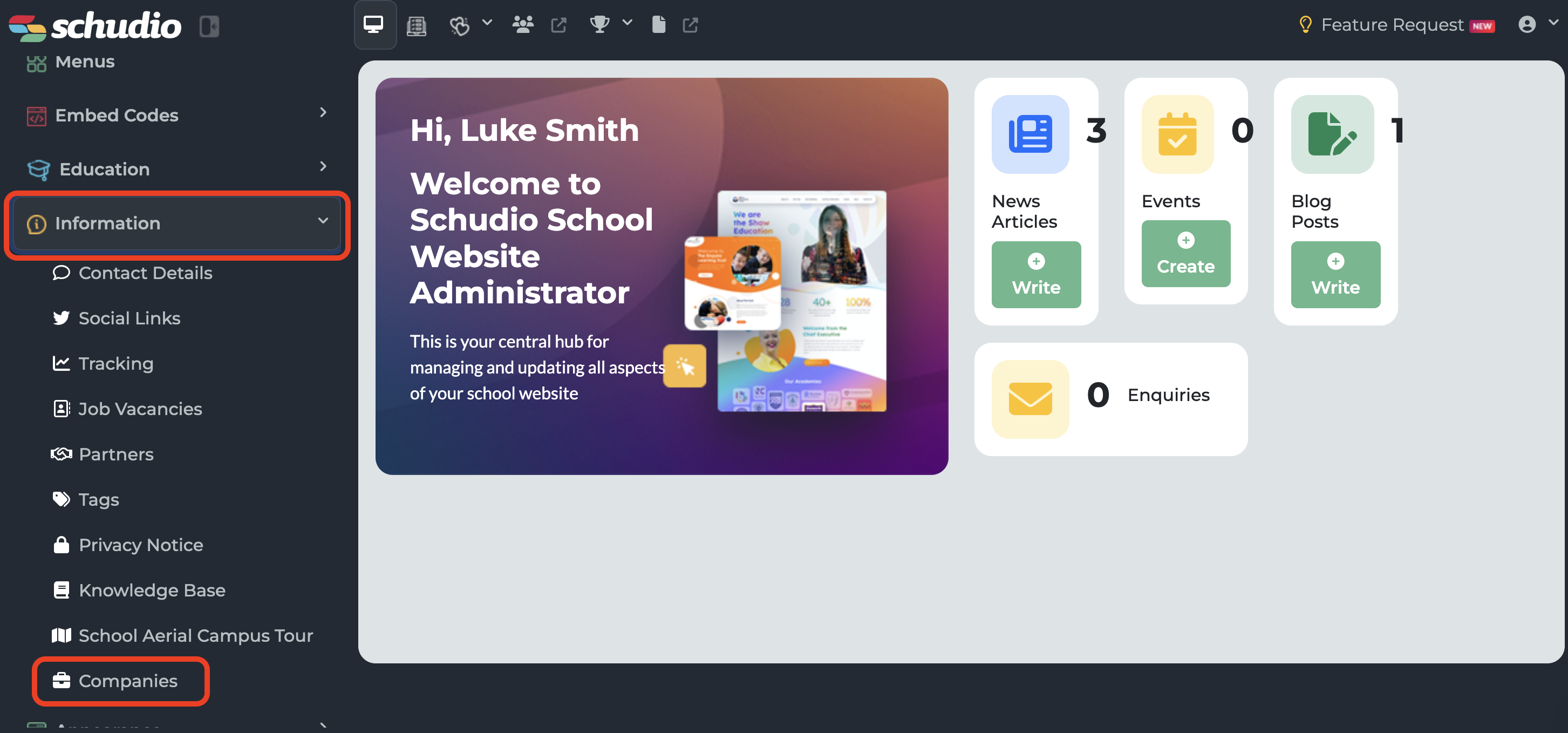 From here, select the Companies sub-menu, which you’ll find at the very bottom of the information dropdown list.