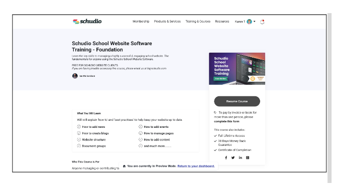 All CMS users can enrol for free on the Schudio School Website Software Training (Foundation) course: