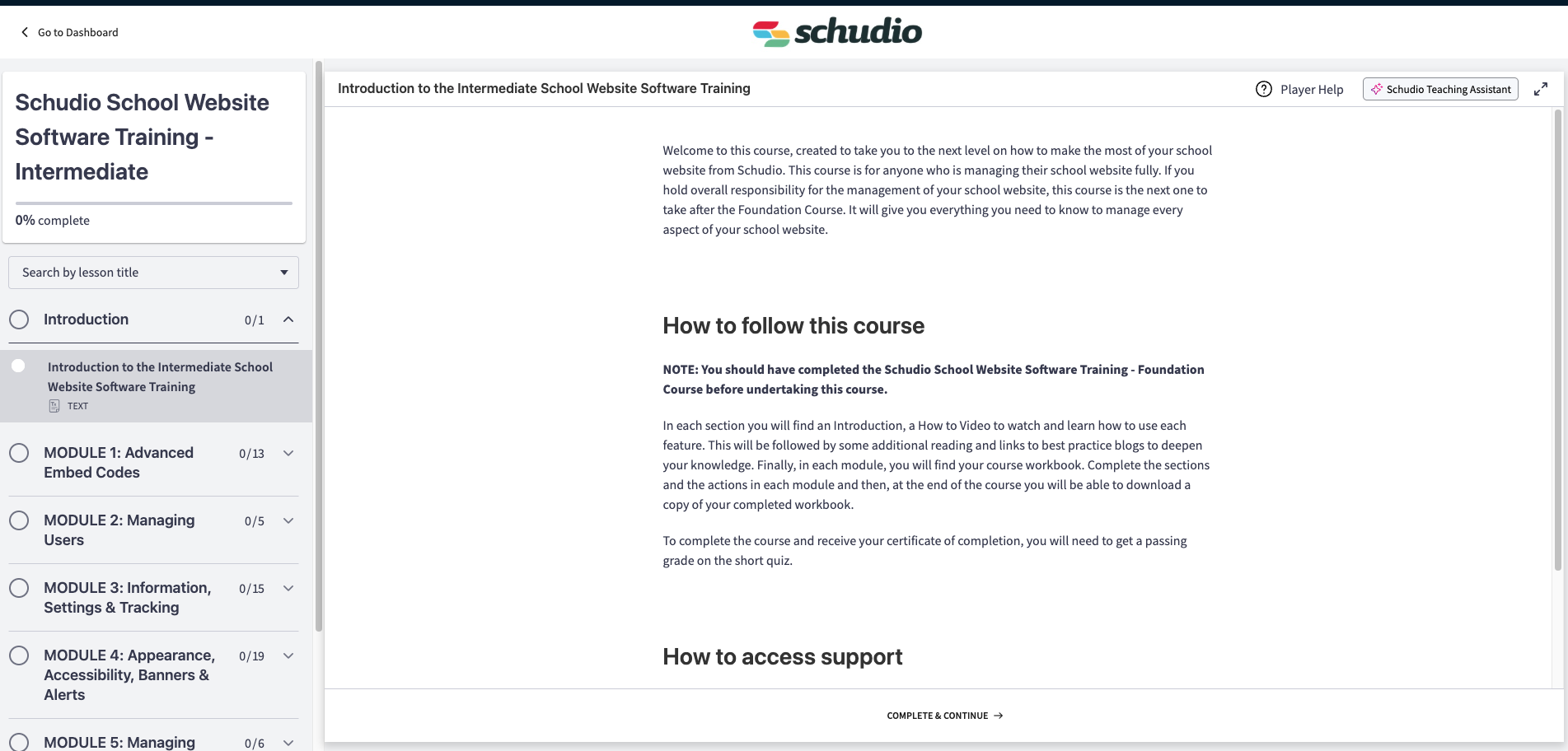 The Schudio School Website Software Training (Intermediate) course is the next step after Foundation.