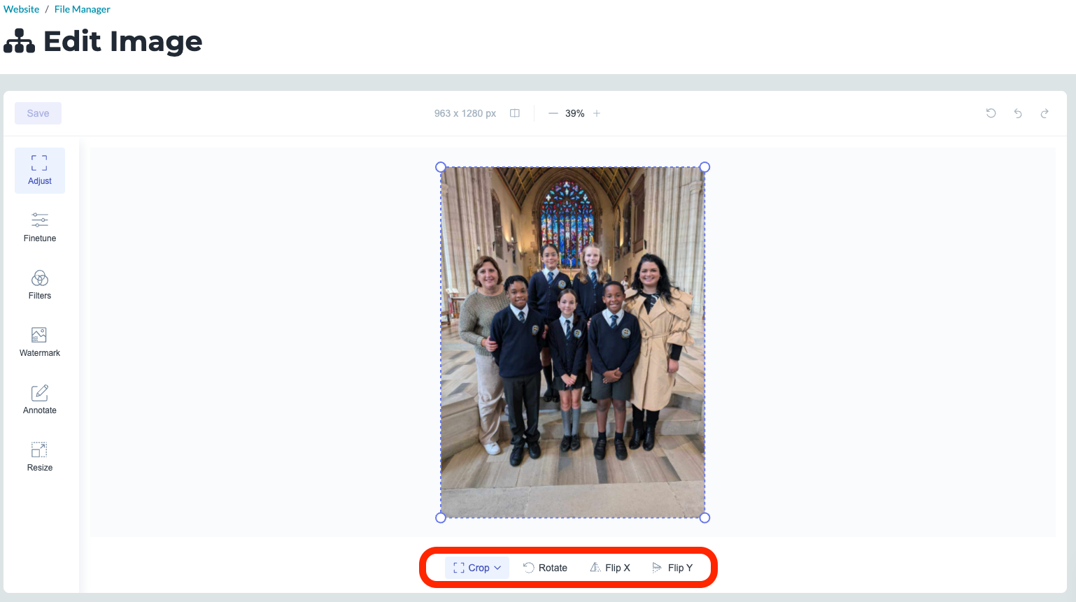 It's really easy to edit images within the Schudio CMS, there's an image editor built in. The most useful things to do are probably Rotate, Resize and Crop your images.
